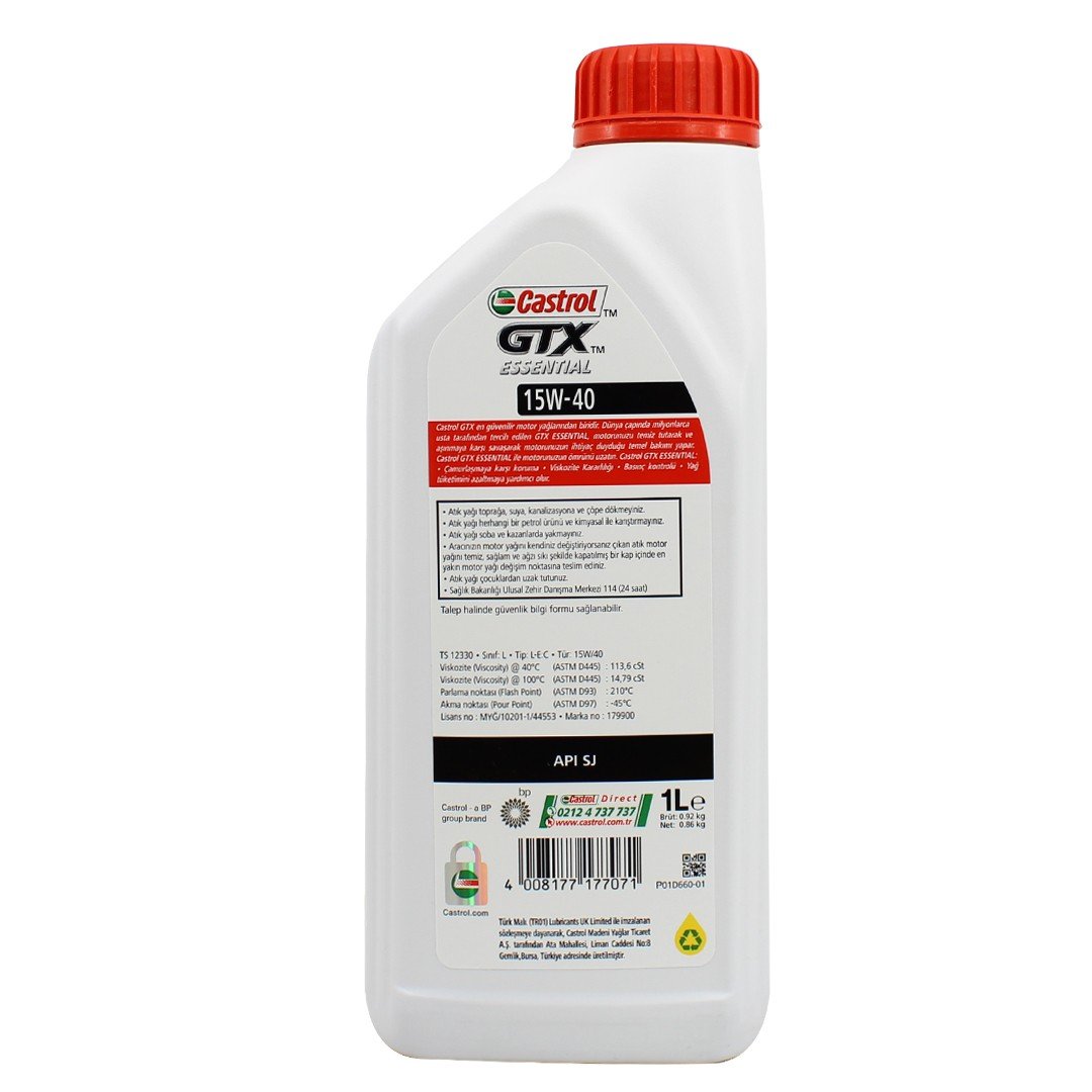 Castrol GTX Essential 15W40 1 Lt Ürün Açıklaması