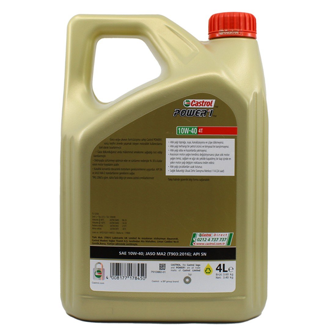 Castrol Power 1 4T 10W40, en son teknolojiyle geliştirilmiş, 4 zamanlı motosiklet motorlarına özel bir motor yağıdır. Hem profesyonel sürücüler hem de motosiklet tutkunu kullanıcılar için tasarlanan bu yağ, motor performansınızı zirveye taşır. “Power Release” formülü sayesinde motosikletinizin gücünü tam kapasiteyle hissetmenizi sağlar.