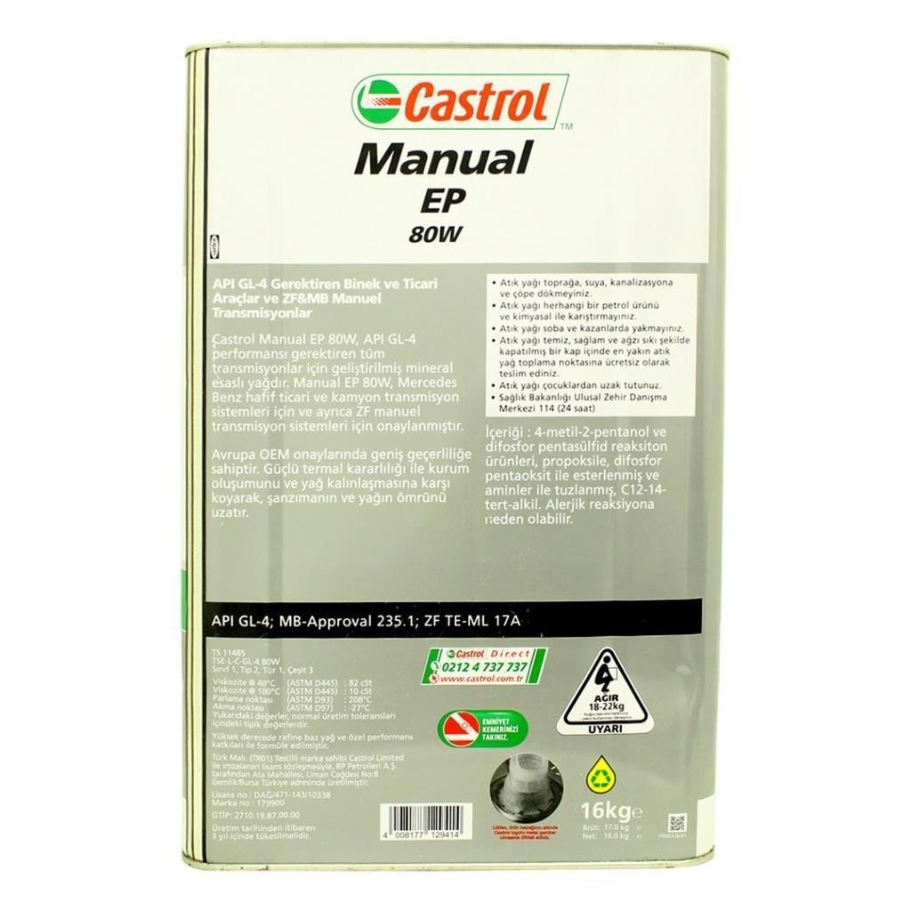 Castrol Transmax Manual EP 80W, geliştirilmiş mineral esaslı yağ ve Avrupa OEM onaylarında geniş geçerliliğe sahip mineral bazlı madeni yağdır.