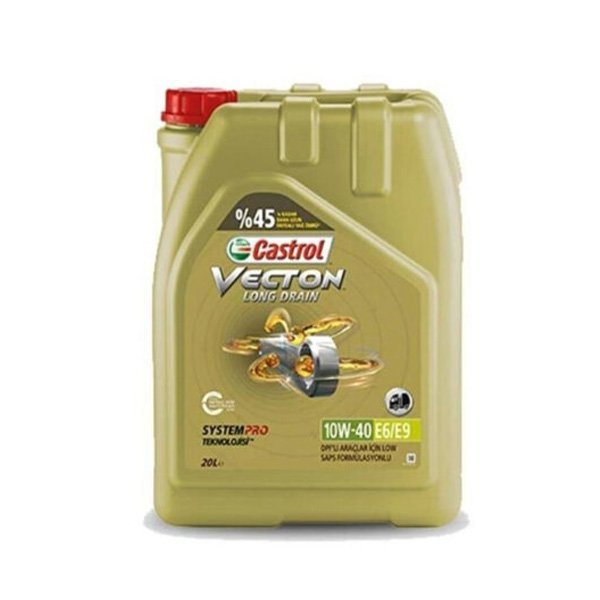 Castrol VECTON® Long Drain 10W-40 E6 / E9, daha uzun faydalı yağ ömrü sağlamak için özel olarak geliştirilmiş tam sentetik ağır hizmet dizel motor yağıdır. Euro I’den Euro VI’ya kadar emisyon gereksinimlerini isteyen dizel motorlarda kullanımı uygundur. Düşük kükürtlü yakıt kullanılan, partikül filtreli veya filtresiz motorlarda ve pek çok EGR’li ve SCR sistemine sahip motorlarda kullanımı uygundur.