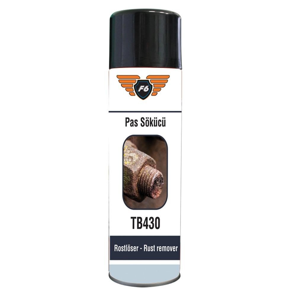 F6 Pas çözücü / gevşetici / yağlayıcı,derinlemesine nüfuz eden çok amaçlı kullanılan sprey üründür. Sıkışmış, paslanmış ve korozyona uğramış parçaları gevşetir, çözer. Hassas parça ve ekipmanları temizler ve yağlar. Su ve nem tutumaz. pas, korozyon ve donmaya karşı koruma sağlar. Gıcırtı seslerini keser. Yağ ve gres lekelerini giderir.